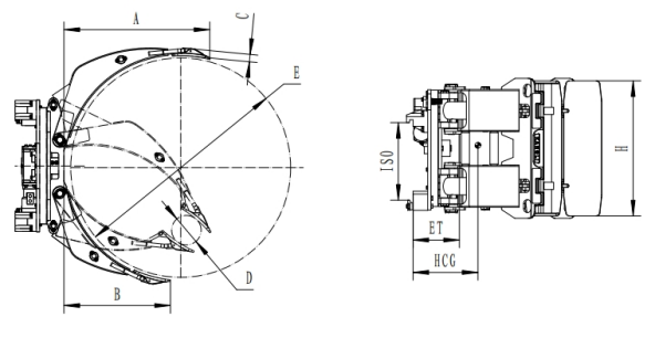 | (kg) | D-E (mm) | A (mm) | B (mm) | C (mm) | (kg) | ET (mm) | HCG (mm) | |||